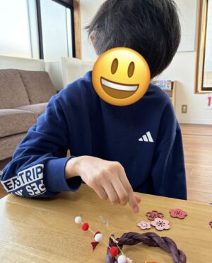 たくさんの種類の中から飾りを選んで、一人一人個性のある、しめ縄を作りました😄