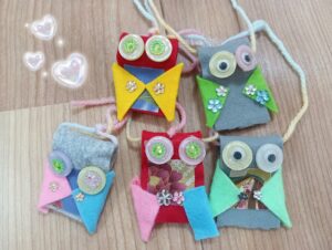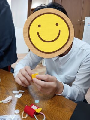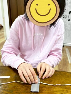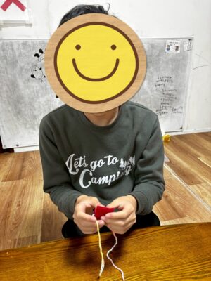 材料を決めたら次はフェルトの上に丸い小さなポンポンを乗せます🎶
