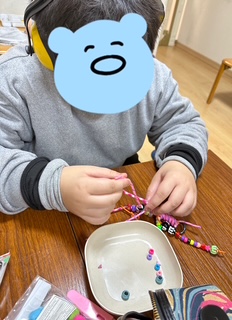 ビーズを通すのが楽しくなって