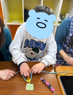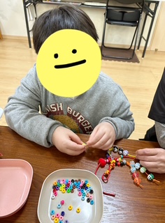 ひもとビーズでストラップ作りです🎵