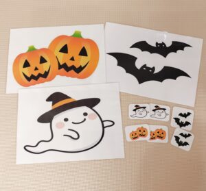 おばけ屋さん、カボチャ屋さん、コウモリ屋さんを回っておやつとカードを交換しました☺
