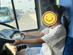 それから一人ずつ運転席に座り、ハンドルも握らせてもらいました🚍