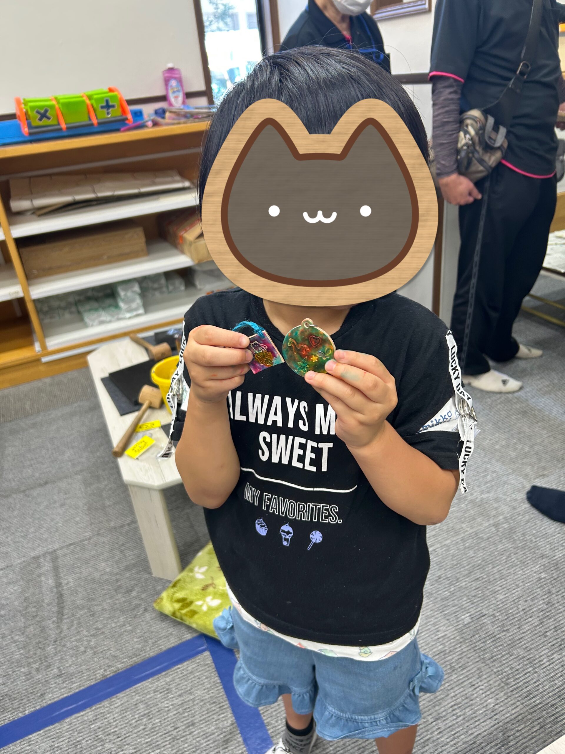 みてみて~と完成したキーホルダーを持って見せに来てくれたよ