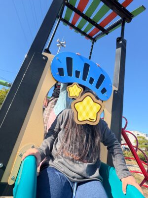 滑り台を一緒に楽しんだり、飛行機を見つけ、