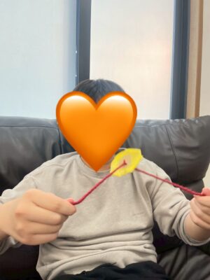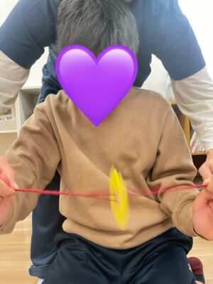 指先を使うのが難しいお友だちも一緒に遊べるようブンブンゴマを使って遊びました-●-