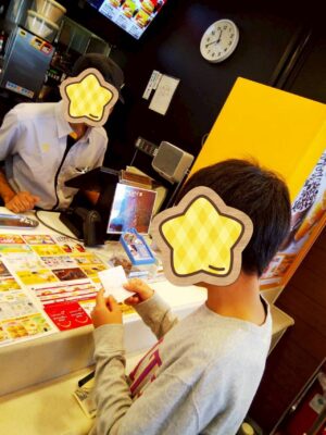 メニュー表を見ながら、どれにしようかなぁとニコニコしながら選ぶお友だち✨