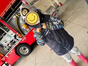 消防車、はしご車、救急車、そして素敵な消防士さんたちが出迎えてくれました🚒✨