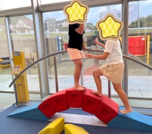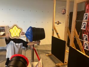 なかなか的が倒れず「むずかしい」と言いながらも何度も挑戦していました✨