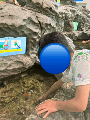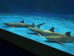 サメを見つけると「サメいっぱい居るね」「ハンマーヘッドシャークいるかな?」と