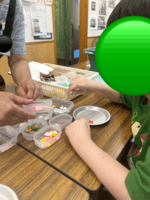 2枚目の和紙に貼る飾りを選ぶお友だち
