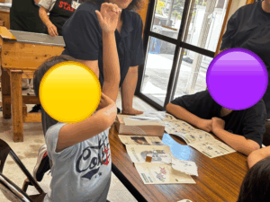 手元のパンフレットを見ながら手を挙げて答えてくれるお友だち✋