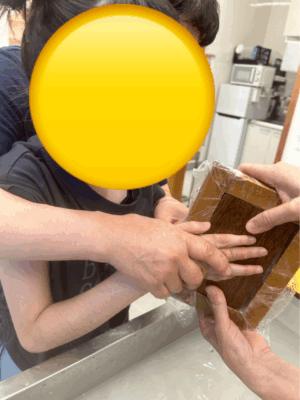 水をある程度落としたら木の板で挟ん