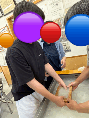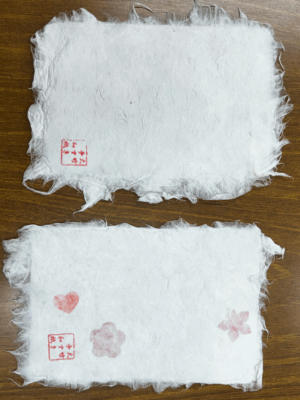 昔ながらの手法ではがきサイズの和紙づくりを体験しました