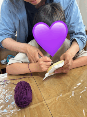 こちらはパンチニードルという専用の針でもこもこのワッペンを作っていきます🧵