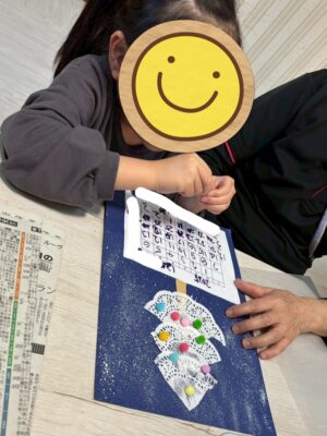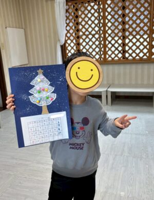 最後に、星のシールをてっぺんに貼ってクリスマスツリーの完成です☆