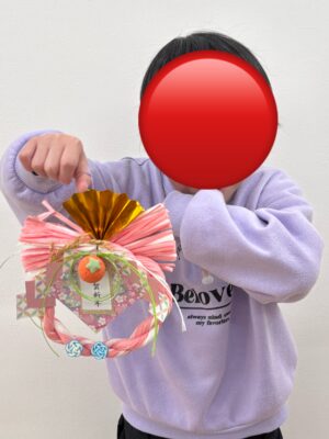 可愛くも豪華になったしめ縄を見て嬉しそうなお友だち